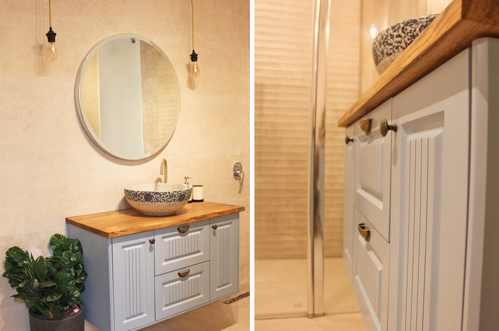 החלל חמים ומזמין, נקי בהגזמה, מבושם בניחוח פרובאנס בכל פינה. התאורה הרכה והחמימה תכניס אתכם במהירות לאוירה שכל כך חיכיתם לה. ריצפת פרקט בצבע אגוז תוביל אתכם למקלחת המפנקת שבנינו עבורכם ובה מוצרי טיפוח כמו שמפו, מרכך וג'ל רחצה על המדף בצמוד למקלחון עם ראש גשם ענק.