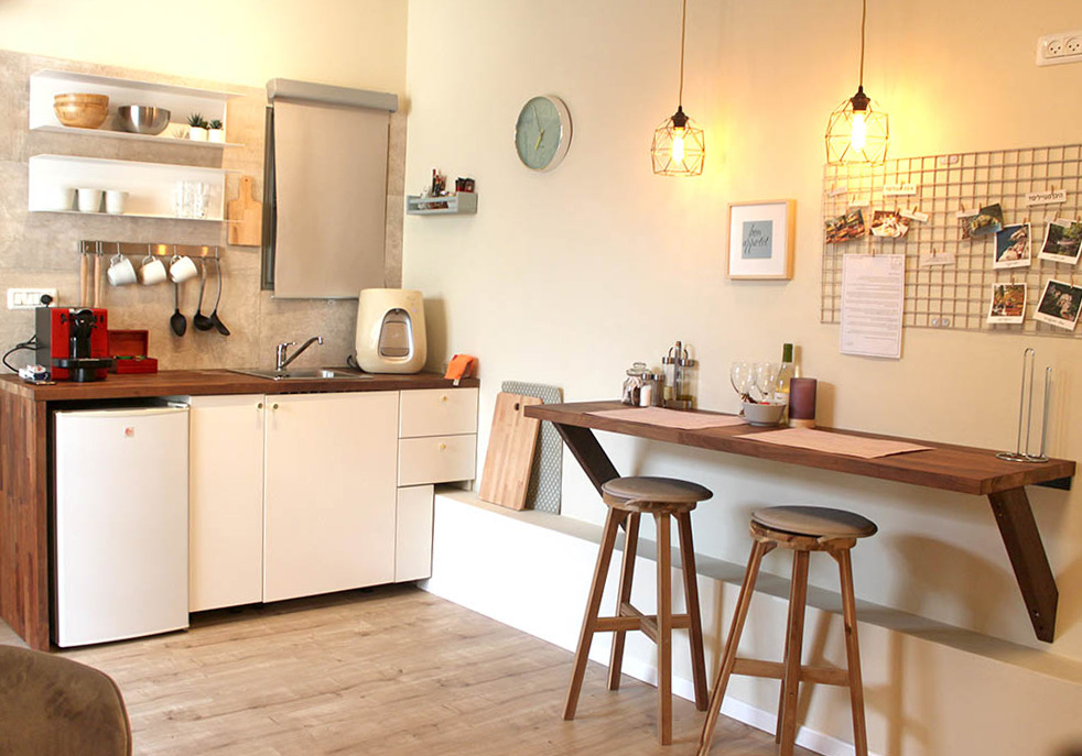 צמוד למטבח בר פינת אוכל עליו תמצאו יין איכותי אדום או לבן לבקשתכם, עוגיות עבודת יד, שמן זית לתיבול, מלח ופלפל. המיני בר עשיר וכולל בירות, חלב לבחירתכם, פחיות שתיה קלה קוקה קולה וצמד עוגות אישיות, והכל הכל בשבילכם באהבה ללא תוספת תשלום.